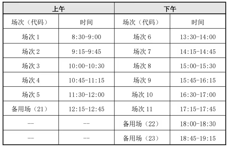 英语四级口语考试(CET-SET4)考试时间为 5 月 20 日(F231 次), 英语六级口语考试(CET-SET6)考试时间为 5 月 21 日(S232 次),具体场次安排如下: