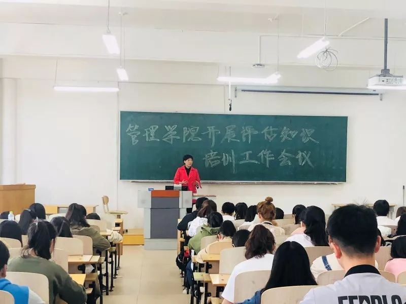 大学生思想政治教育“112349”工作模式实施方案》的文件精神,落实学校本科教学工作审核评估迎评筹备会精神,做好迎接教育部本科教学工作审核评估工作,确保审核评估工作顺利进行,提高学生迎评意识,管理学院公共管理系于5月11日上午8:30在社科楼301教室召开评估知识培训工作会议,此次会议由辅导员李新野老师主持,管理学院2017级公共事业管理,社会工作,劳动与社会保障专业全体同学参加了此次会议。