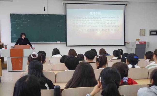 唐梦凡老师首先表达了对同学们加入管理学院的热烈祝贺,并进一步介绍了师大的沿革历史、行知精神以及学校整体的组织建设和强大的师资力量。接着,她带领学生们深入了解了本专业多个方面的未来就业流向,提醒学生们应当提前做好未来职业规划或做好考研计划,并为学生们分析了大学里最重要的学分组成,同时强调毕业论文以及英语四六级等考试的重要性。最后,唐梦凡老师强调:大学之道,在明明德,在亲民,在止于至善。”希望学生们适应环境并尽所能为改变环境贡献力量;尊重崇尚知识,做一个热爱学习的人;强调不仅仅重视学习,更要学会做人学会与人交往以及拥有强健的身体是一切发展的前提。