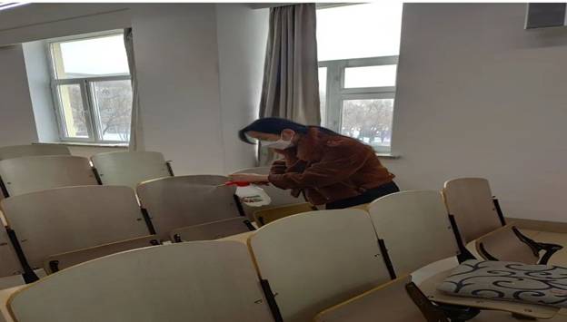 为了确保学生们返校后上课环境安全,徐光副院长带领教师们对教室进行防疫消杀并开展了详细的安全检查,对每间教室的地面和各个角落进行彻底的消毒,打开窗户通风换气,以保证消毒工作的到位和保障教室环境安全。