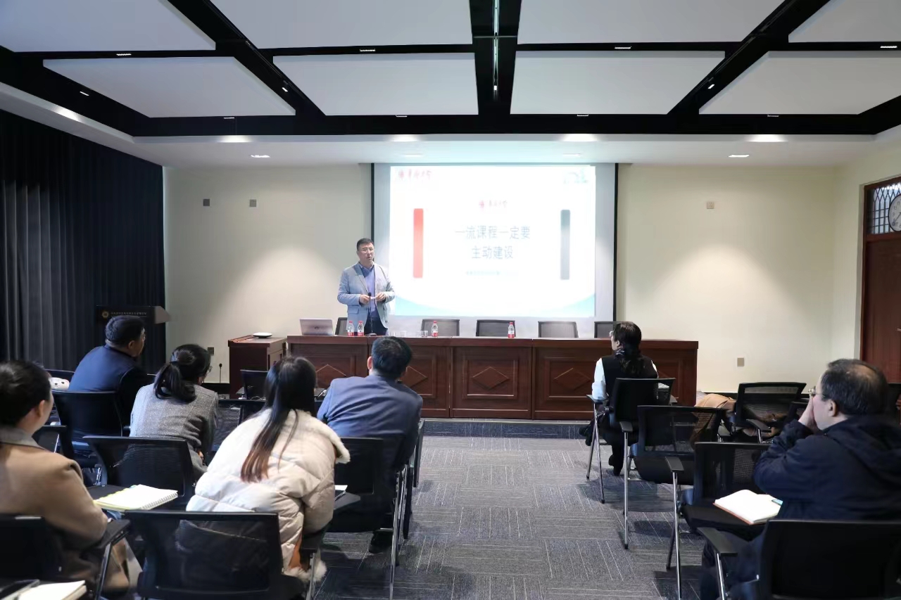 讲座上,杨洪涛教授从三代国家一流课程发展演变、课程具体建设实践详解、课程思政建设实践解析、国家级教学平台建设实践、课程多层次建设实践拓展等五个方面向我院教师分享国家一流课程与一流专业建设的经验与体会。杨洪涛教授结合自身一流本科课程建设与申报的经验,指出专业课要具有高阶性、创新性、挑战度。随后,杨洪涛教授结合具体课程案例,对说课视频、教学设计等内容进行了重点介绍。最后,杨洪涛教授希望我院教师通过信息化、数字化赋能课程建设,进而提升本科课程质量。