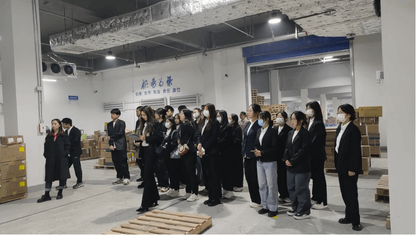随后,在人力资源经理孙瑶的带领下会计学专业全体师生一同参观了商品仓储物流园,了解到企业从供应、仓储,到销售、物流等经营活动交易或事项,并与企业员工互动交流。在此过程中,同学们深深地感受到企业高效的管理水平和创新的服务理念,以及员工严谨的工作态度和精湛的专业技能,从而对以后的工作方向和目标有了更明确的认知。