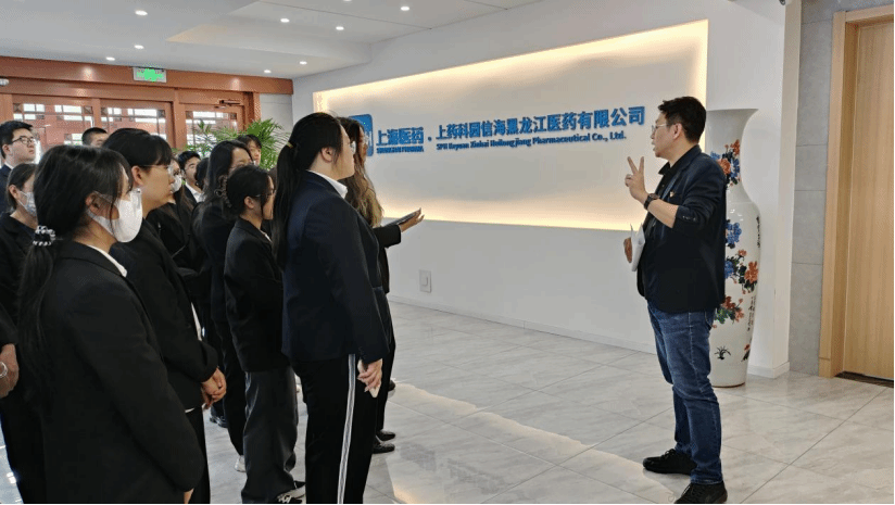 2023级会计学专业本科共71名学生在会计系主任张雪梅教授,专业负责人、会计系副主任闫禹老师,会计学教研室主任乔婉婷老师,会计系党支部书记李卓异老师和杨皓老师的带领下,共同走进上药科园信海黑龙江医药有限公司开展认知实习活动。