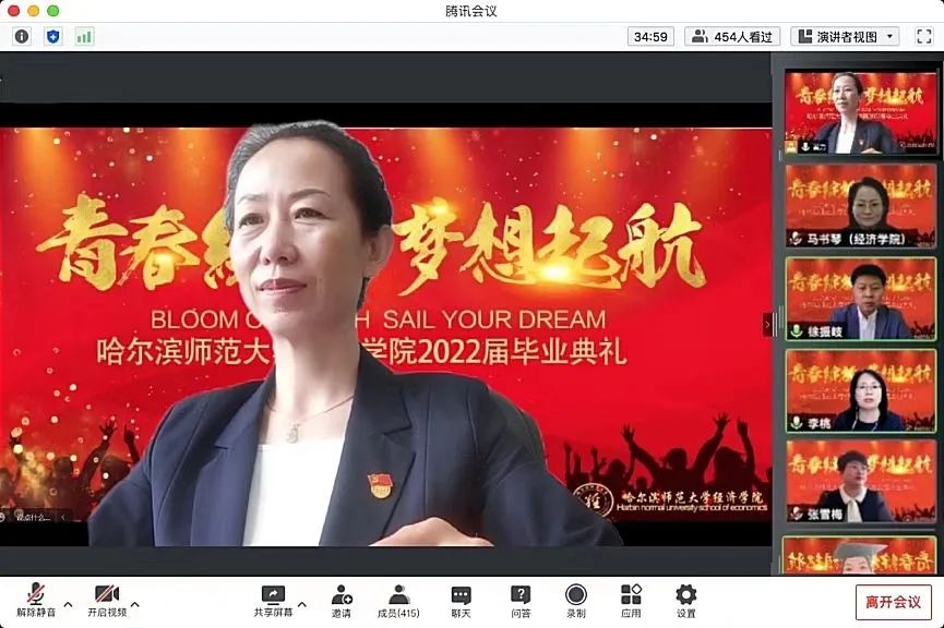 为扎实做好毕业生离校教育“十个一”活动,5月18日下午13:30,经济学院依托腾讯会议平台举行了2022届毕业生“云毕业典礼”。经济学院院长马书琴、党委书记徐振岐、副院长李桃,学院全体教职工和2022届毕业生参加此次典礼。毕业典礼由学院党委副书记翟力主持。