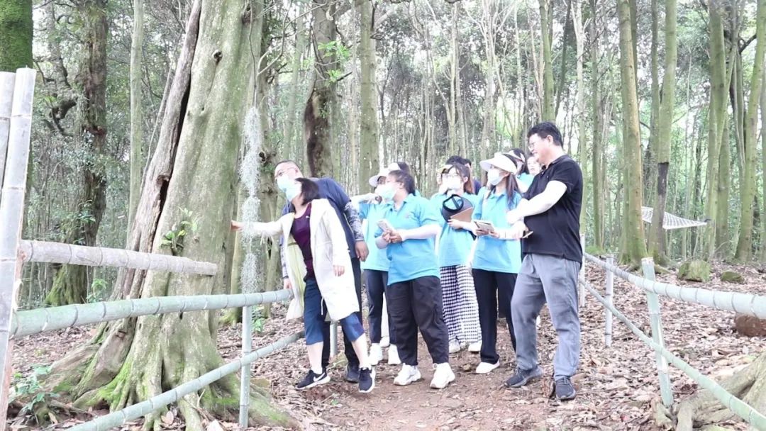 实践团在高山数字农业示范园科技特派员、福建超大现代种业有限公司总经理徐福乐博士的带领下,首先来到数字化种养控制中心。据徐福乐介绍,数字化林下种养殖区利用现代信息技术,通过物联网平台、传感器、溯源系统等数字化手段为灵芝种植和土鸡养殖提供精准管护和预定销售。并在种养区基本实现了“土鸡养殖-鸡粪烘干发酵-还田”的生态循环,促进了农业可持续发展。随后,实践团在徐博士带领下走进瓜果长廊,了解智慧农业数字化工具在南瓜、丝瓜、佛手瓜等瓜果新品育种和生产上的应用。最后,实践团来到该项目大田种植区,即萤山蝶谷优质农作物新品种百亩示范推广基地。该基地主要选育紫糯米水稻、水果玉米等优质品种,培育智慧农业水培果蔬,采取认养模式,带动农民增收。