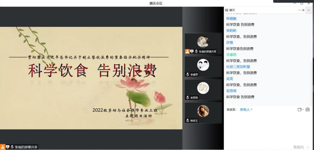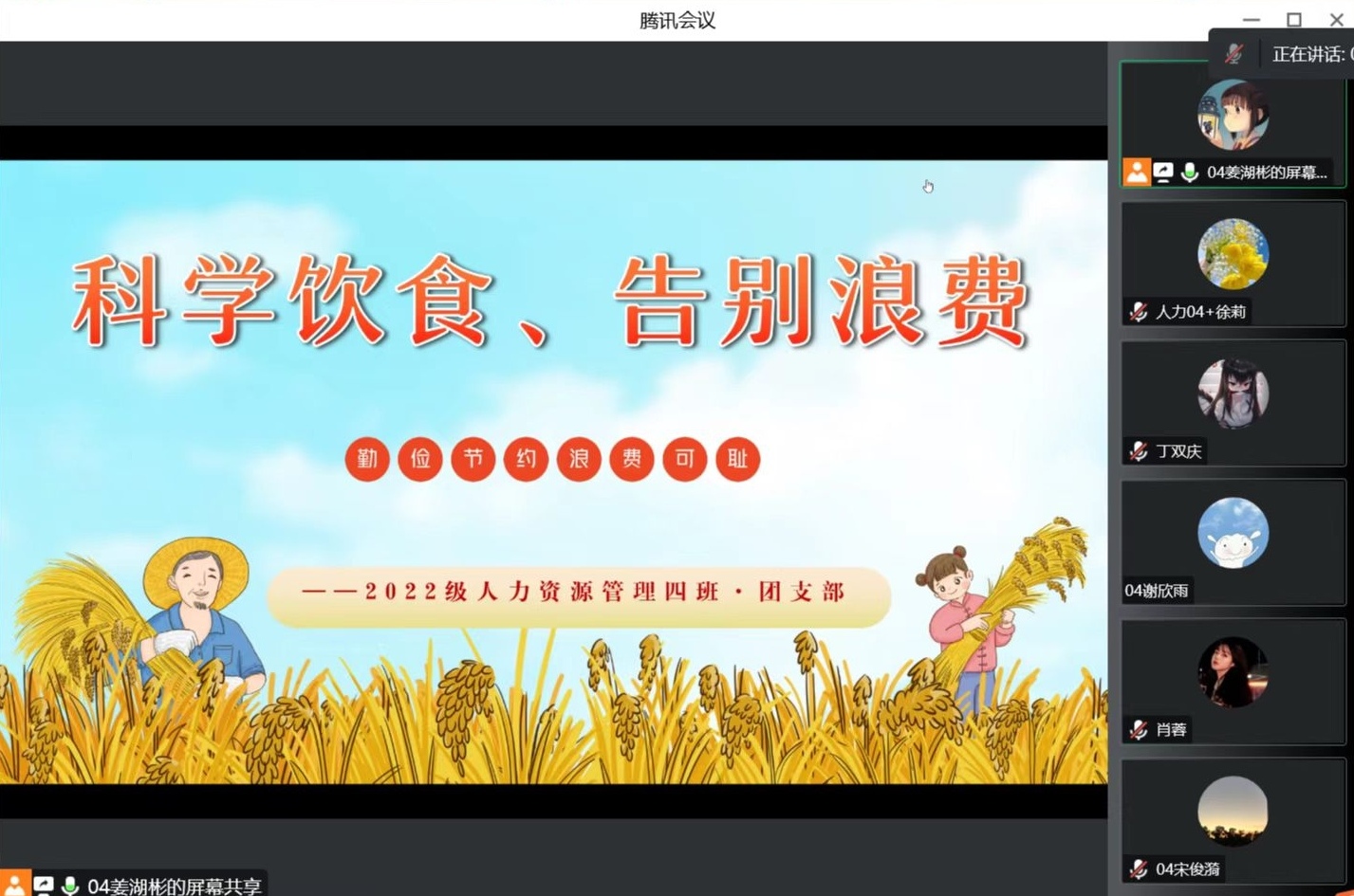 统一观看公开课后,各支部团支书组织开展了“科学饮食,告别浪费”、“关注食品安全”、“做节约粮食践行者”等主题团日活动,号召全体同学广泛学习和宣传勤俭节约精神。同学们纷纷表示,作为新时代青年,应以节约为荣、浪费为耻。生活中做到不剩饭、不浪费、吃多少、盛多少;节约用水、用电,做到人走灯灭;争做勤俭节约新风尚的传播者、实践者、引领者,为构建绿色低碳校园做出自己的贡献。