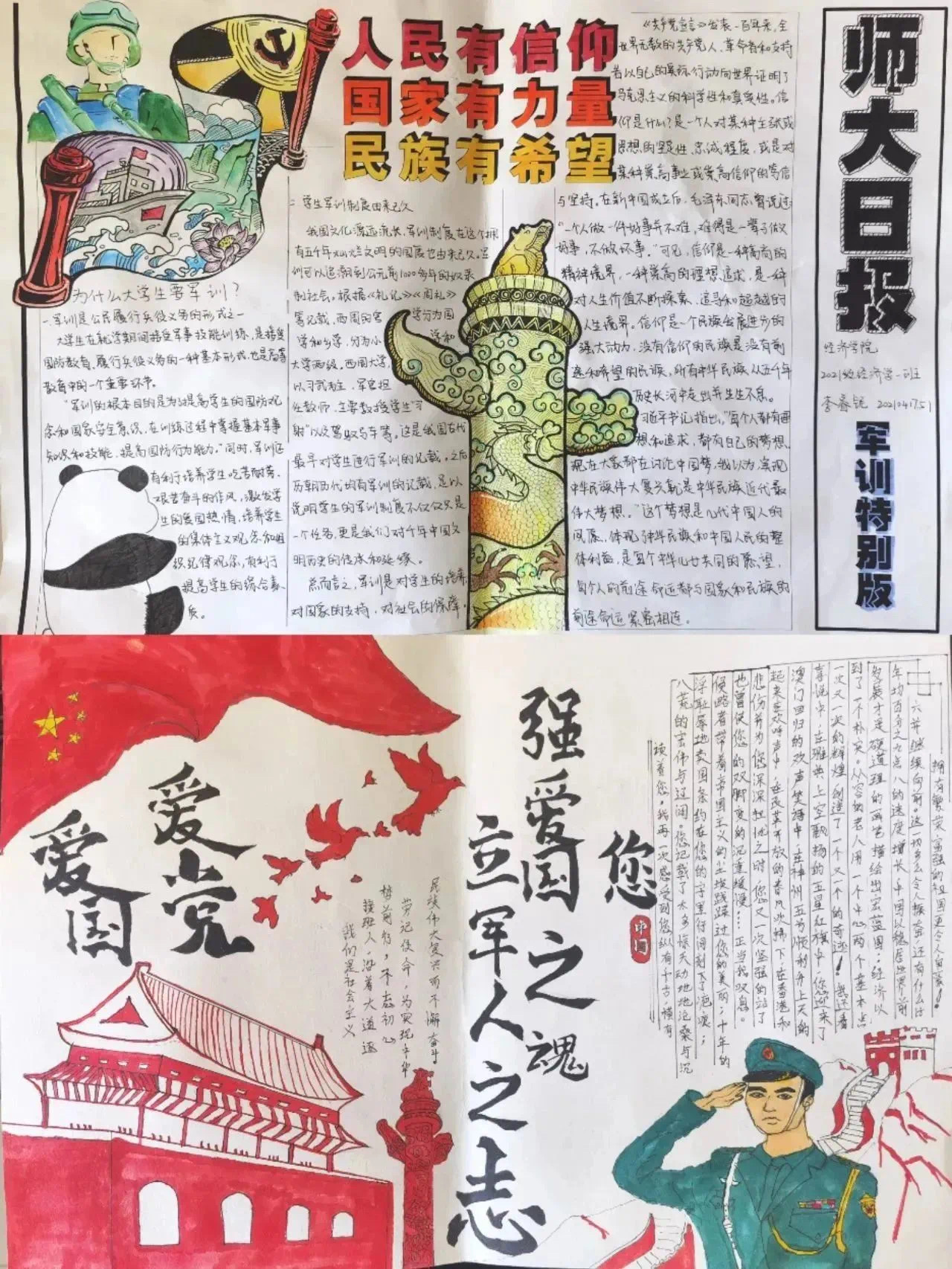 军训国防知识竞赛于2023年3月14日19点至15日12点间开展,此活动采取网络线上答题的形式,限时25分钟,每人只可答题一次,考察同学们对军训相关知识的掌握情况,共计700余人参加本次竞赛答题活动。军训心得和手抄报比赛于2023年3月7日至15日开展,本次军训心得和手抄报的主题为“立军人之志,强爱国之魂”。在军训心得比赛中,同学们积极分享自己的军训故事和军训感悟,体验军训情怀;在军训手抄报比赛中,同学们用画笔将本次难忘的军训生活升华为永恒。军训演讲比赛于2023年3月15日13点在崇师楼C206举行,活动围绕“强军亦是强国,军强才能国安”这一主题,通过学生自选体裁和主题的方式,旨在激发大学生关心支持国防和军队建设的热情。上述活动均评定出一、二、三等奖和优秀奖学生若干,于赛后分别对活动结果进行公示并为获奖同学颁发荣誉证书。