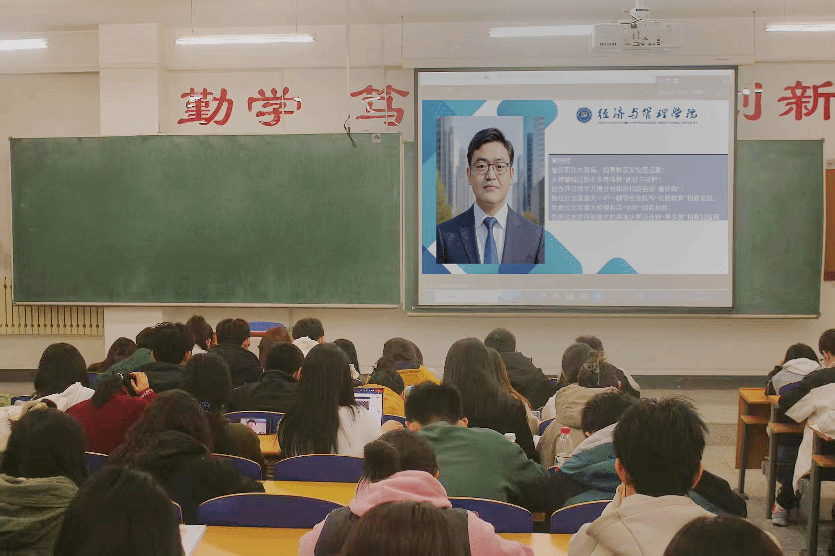 于2025年3月23日召开“聚焦未来 从‘新’开始”职业规划系列讲座,本次讲座邀请到我院2021届优秀毕业生吴国辉担任主讲。吴国辉曾任职北大青鸟指导过数百家校区运营;担任过全国高端幼儿园金色摇篮招商总监、负责过北京当时最大的便利店“全时“招商加盟和北京目前最大的高端水果店连锁“果多美”招商加盟和加盟商管理,现任职天翔睿翼科技运营总监。讲座以线上形式开展,学院全体2024级学生共计600余人参加。