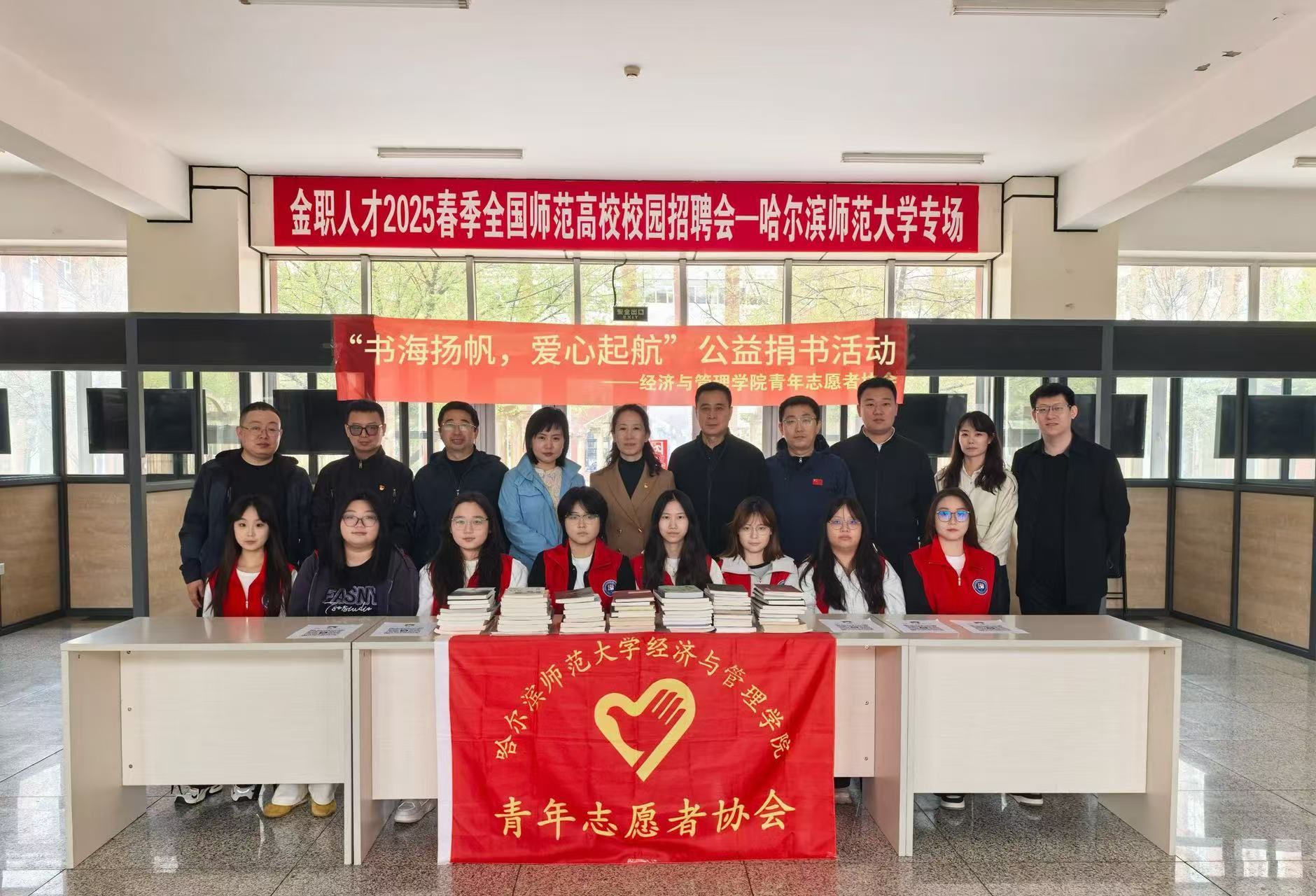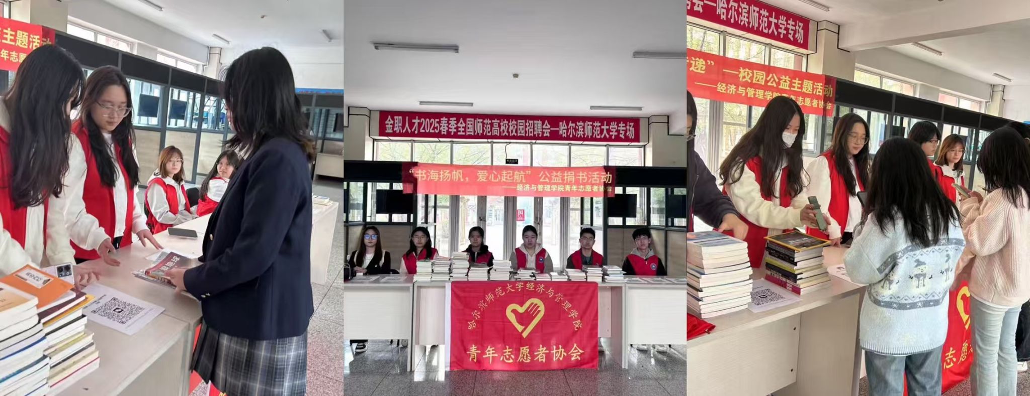 青年志愿者协会于2025年4月23日下午在崇师楼B区大厅发起“书海扬帆,爱心起航”公益捐书活动,本次活动累计参与90余人,收到捐赠书籍300余本。