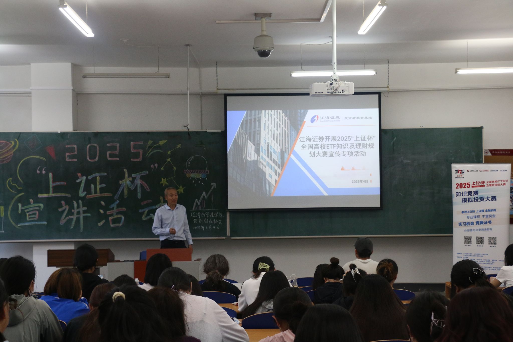 创新创业协会于6月4日18:30在崇师楼C201、C203举办2025年“上证杯”全国高校ETF知识及理财规划大赛宣传专项讲座,本次讲座由江海证券有限公司的张春波先生主讲,学院2023级经济学、会计学、经济统计学、贸易经济学专业同学参加了本次宣传讲座。
