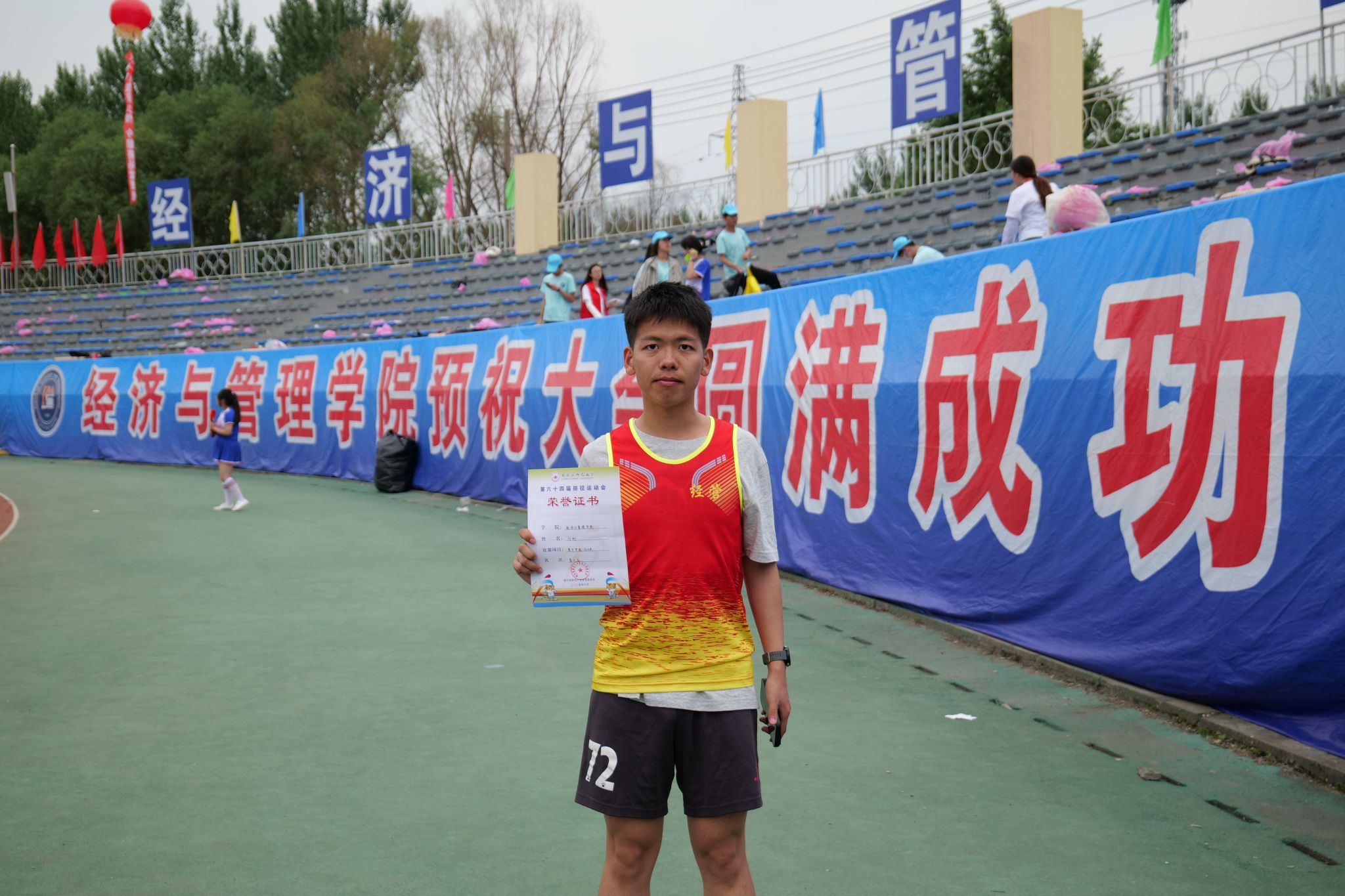 我校第六十四届田径运动会圆满落下帷幕。运动会不仅是一场体育竞技,更是展现精神风貌的舞台。经管健儿们用拼搏诠释了“更快、更高、更强”的体育精神。运动会虽已结束,但拼搏精神永不落幕。全体经管学子将会把赛场上的激情延续到学习和生活中,以更强健的体魄、更饱满的热情迎接未来的挑战。让我们一起期待明年再次相聚在这片充满激情与梦想的赛场上,续写属于经管人的辉煌篇章!