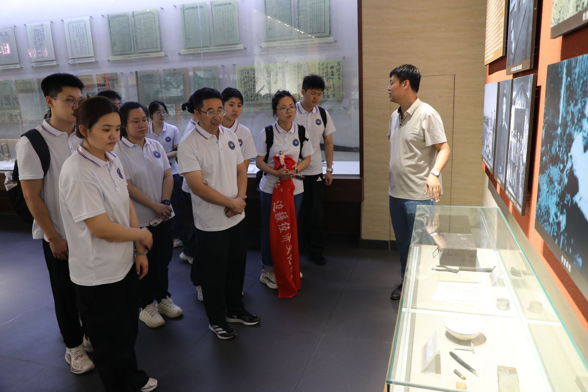 7月12日上午8时,活动首站,团队一行抵达八五〇军垦建设开发博物馆开展调研活动。八五〇农场党委高度重视实践团的来访,农场党委工作部副部长董金虎同志亲自陪同调研并负责讲解。在董金虎同志的细致讲解下,博物馆内一件件承载历史的珍贵实物、一幅幅记录往昔的泛黄照片、一段段详实生动的文字,栩栩如生地展现了八五〇农场自创建以来波澜壮阔的发展历程。在历史遗迹与现代社会的交融中,队员们仿佛穿越时空,重温那段艰苦卓绝的奋斗岁月,深刻领悟到“自力更生、艰苦创业、勇于开拓、甘于奉献”的北大荒精神,更加明确了自身作为“强国一代”所肩负的使命担当。队员们纷纷表示,要将北大荒精神内化于心、外化于行,以先辈们为榜样,在未来的学习和实践中勇挑重担,为推动边疆经济文化振兴贡献自己的智慧与力量。
