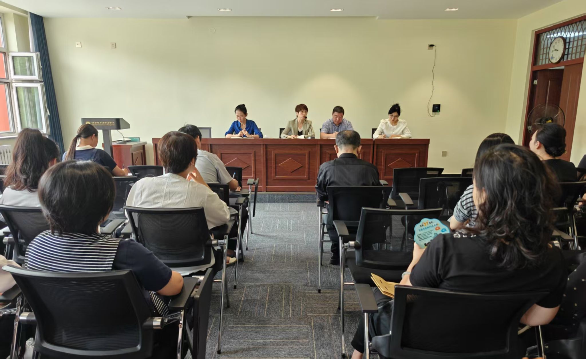 副院长祁凯首先对暑期“跨境电商国际夏令营”的圆满举办表示肯定,向在活动筹备与开展中辛勤付出的教师表示感谢,此次夏令营为学院深化国际化人才培养路径积累了实践经验,并围绕新学期教学管理、课堂建设与人才培养等核心工作作出部署。强调教师要精准锚定备课重难点,确保教学内容与人才培养方案紧密衔接。结合新学期教学日历调整情况,明确要求教师提前10分钟进入教室做好课前准备,切实维护课堂教学秩序与教学环境。着重明确了2025届毕业生信息录入及2026届毕业生开题两项事宜的规范标准与关键节点,为毕业生工作有序推进提供清晰指引。