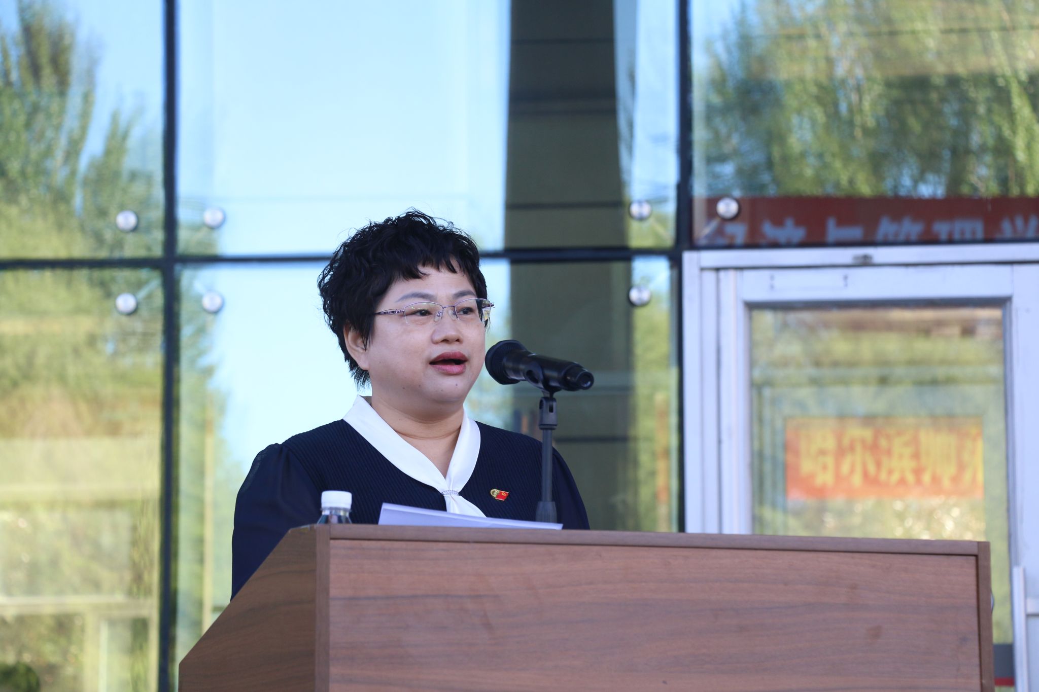 在校本科生代表、2023级劳动与社会保障专业苏文佳发言。她表示,大学不是高中的延续,更不是安逸的港湾。它是一个探索的起点,一个成长的熔炉。愿同学们以哈师大188bet