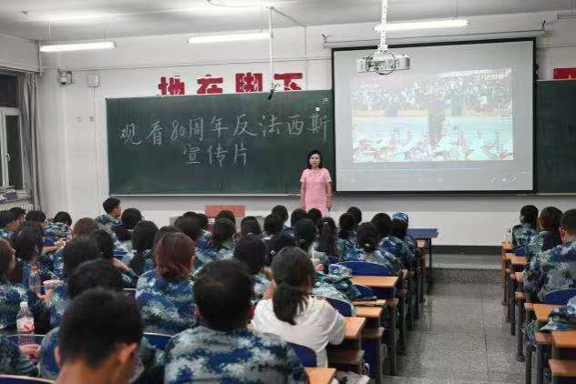 于9月12日18:30组织我院2025级新生观看纪念中国人民抗日战争暨世界反法西斯战争胜利80周年宣传片活动,旨在推动学院爱国主义教育,引导同学们从历史中汲取奋进力量。辅导员王秋伟老师、陈凤老师、佟瑶老师及772名新生参加了此次观看活动。