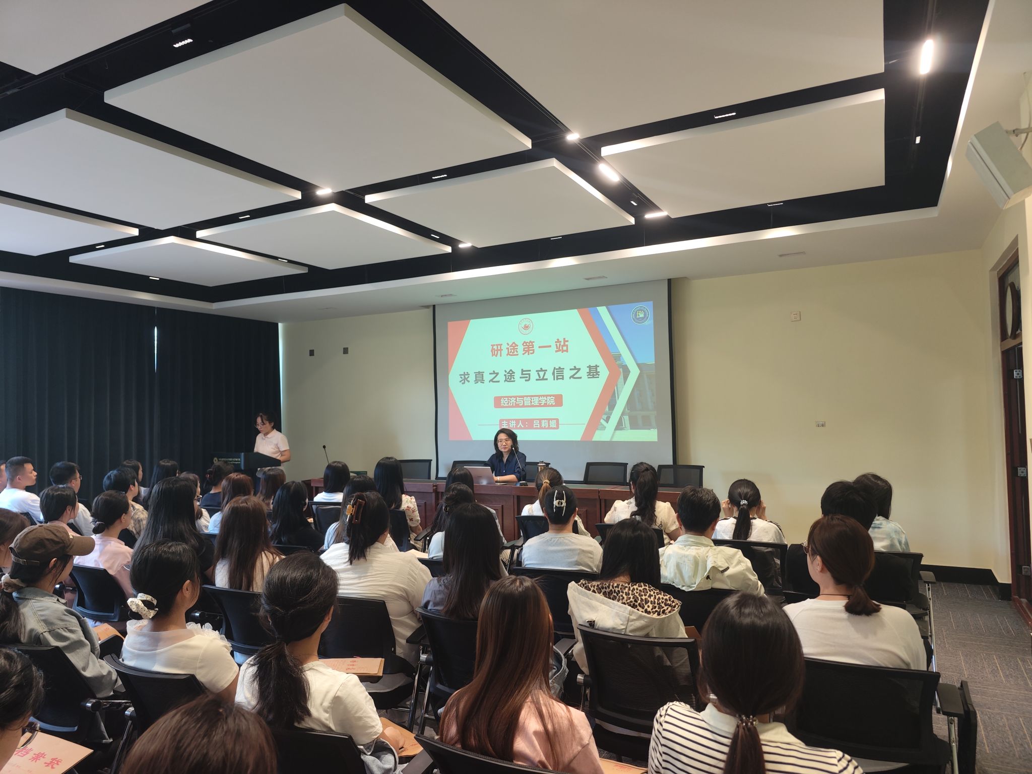 在崇师楼B318举行“研途第一站——求真之道与立信之基”专题讲座。活动特邀学院硕士生导师吕莉媛教授担任主讲,2025级全体研究生新生参加。