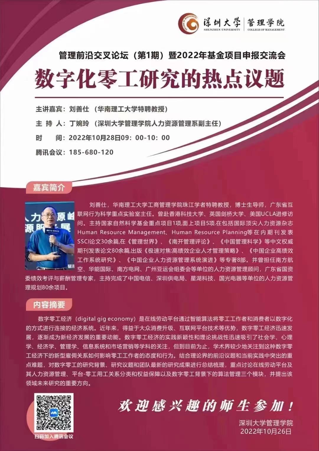 管理前沿交叉论坛(第1期)暨2022年基金项目申报交流会——数字化零工研究的热点议题