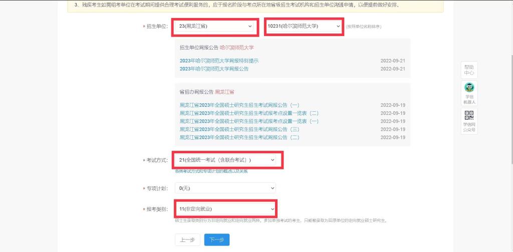 注意:报考类别:11(非定向就业)、12(定向就业)。请考生根据实际情况自主选择。缴费完成后,请打印报名信息表,并注意打印准考证时间。