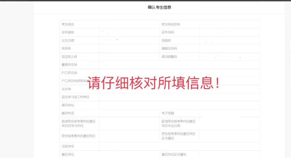 网上报名时要认真阅读报考点公告,成功缴费并生成报名号后所有考生均应当在规定时间内在网上(或到报考点指定地点现场),核对并确认其网上报名信息,逾期不再补办。网上确认时间由各省级教育招生考试机构根据国家招生工作安排和本地区报考组织情况自行确定和公布。