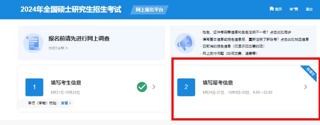 (2)请考生务必于网上报名期间在网上缴纳报考费,最迟须在10月25日22:00前完成网上缴费,后续的网上确认期间一律不再接受补缴费。未缴费的报名信息无效,不能参加考试。