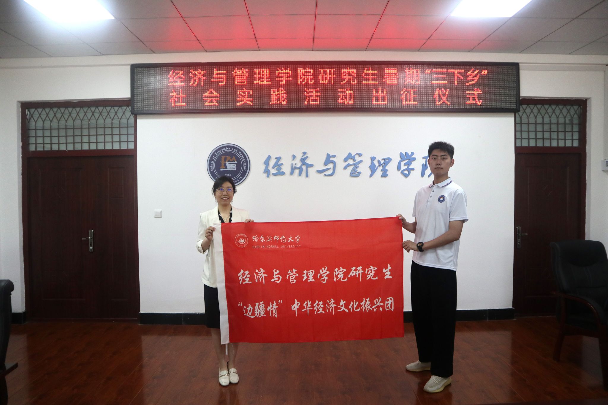 最后,院长徐光教授和副院长祁凯教授分别为研究生暑期“三下乡”社会实践团队授旗,鼓励经管学子们深入社会、深入群众、接受考验、增长才干,在实践中展现风采、贡献智慧、奉献力量。