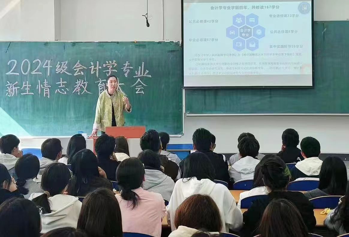 2024级会计学专业新生深化专业认知,稳固专业思想,树立专业自信,做好学业规划,更好适应校园生活,学院于9月28日上午10点在崇师楼A223召开会计学专业新生专业情志教育大会。本次大会由会计学专业负责人闫禹老师和会计学教研室主任乔婉婷老师主讲,全体2024级会计学专业新生参加。