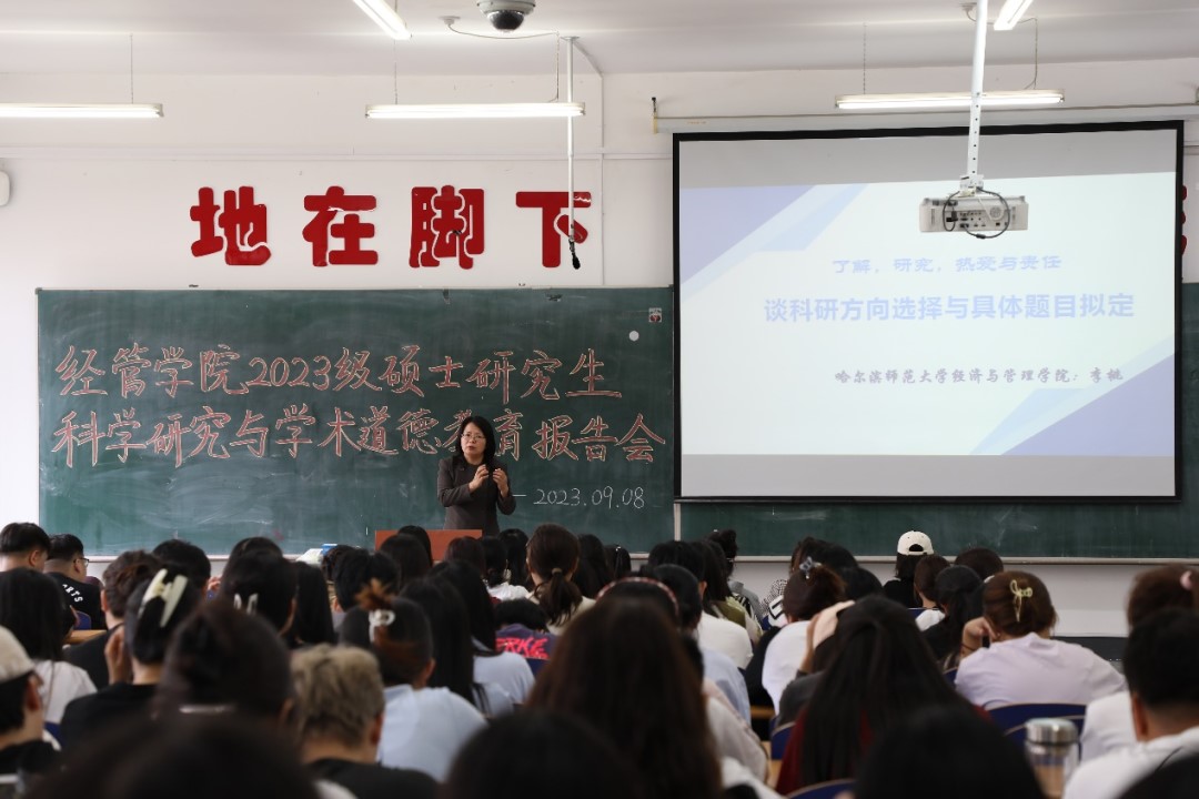 本次2023级硕士研究生科学研究与学术道德教育报告会的顺利开展,增强了学生们对学术道德的认识,激发了同学们的科研热情,极大地提高了新生的思想觉悟和意识,为我院培养优秀人才奠定了思想基础,为我国科研事业贡献哈师大经管的一份力量。