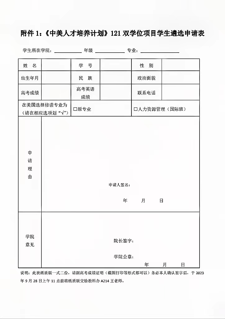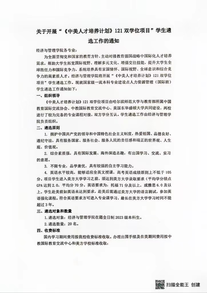 关于开展“《中美人才培养计划》121 双学位项目”学生遴选工作的通知